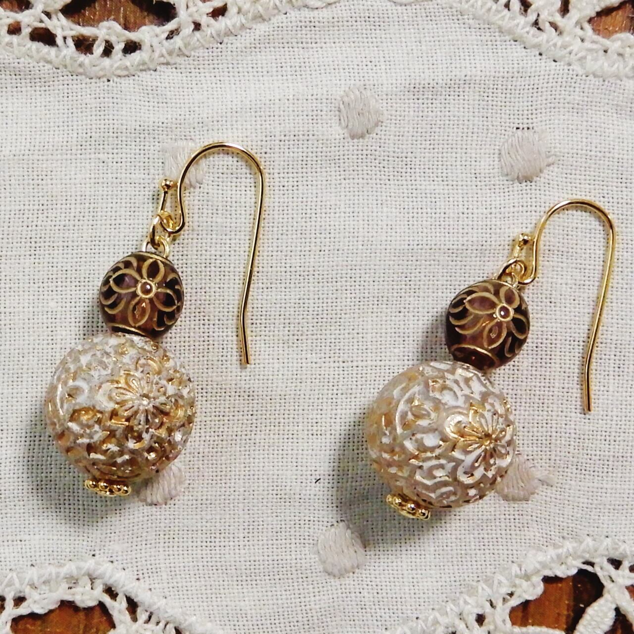 落ち着いた色合いのアンティーク風なドイツ製アクリルビーズのピアスです。