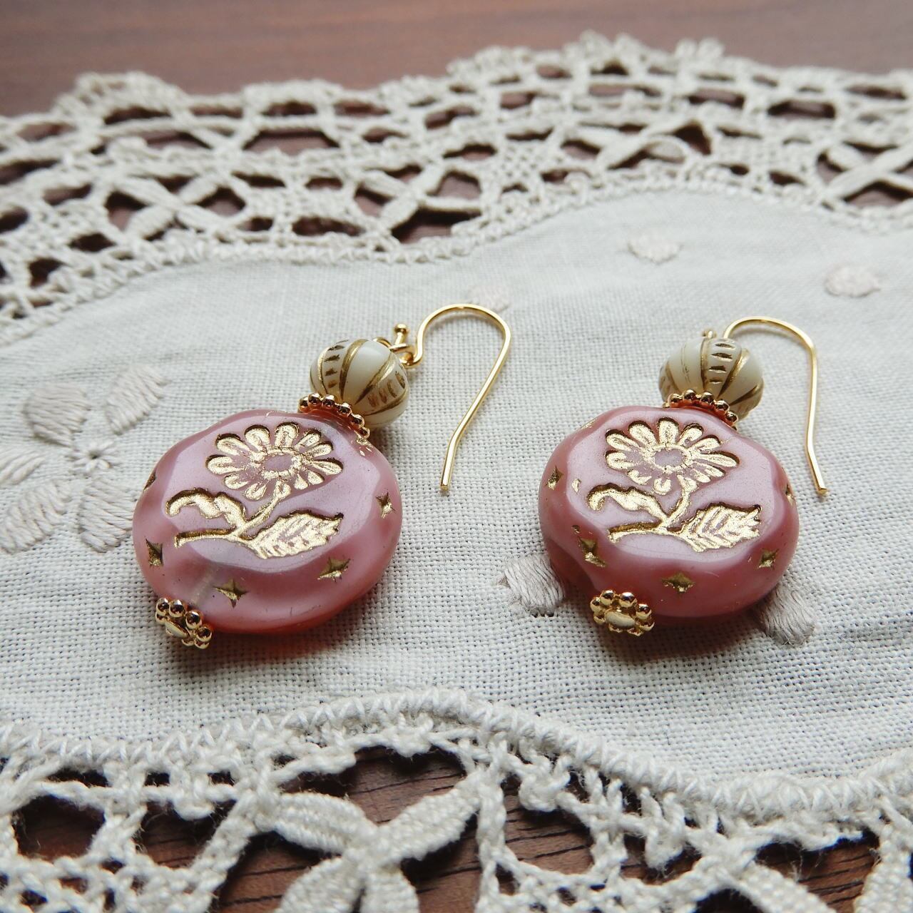 お花柄のチェコビーズとドイツビーズのピアス・イヤリングE329